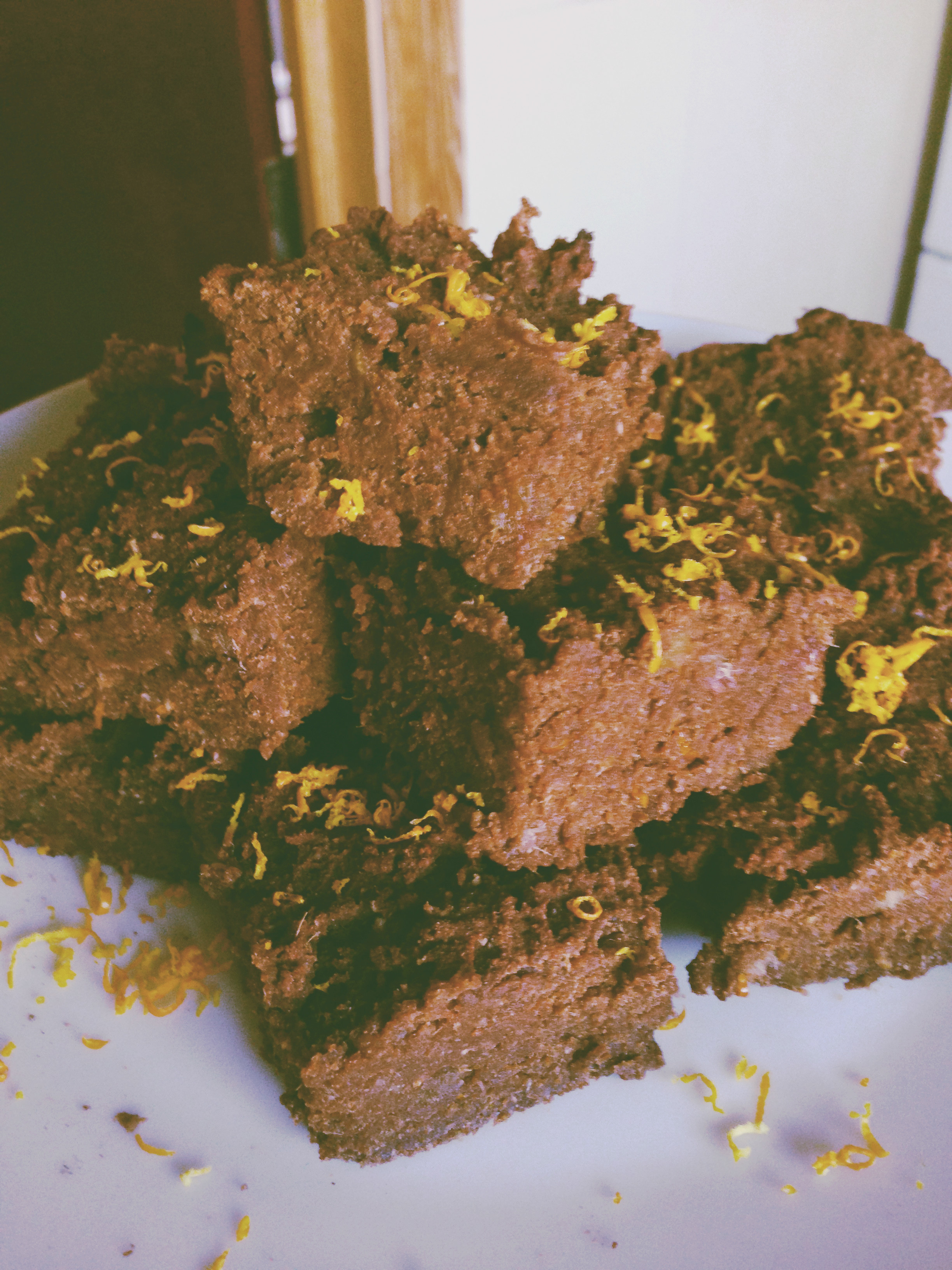 Once you’ve taken the brownies out of the oven, leave them to cool and stick together for 10 minutes. Don’t worry, they’re still deliciously warm after 10 minutes. You can now sprinkle over the rest of the orange zest, and post a photo of your amazing brownies on Instagram (optional).
