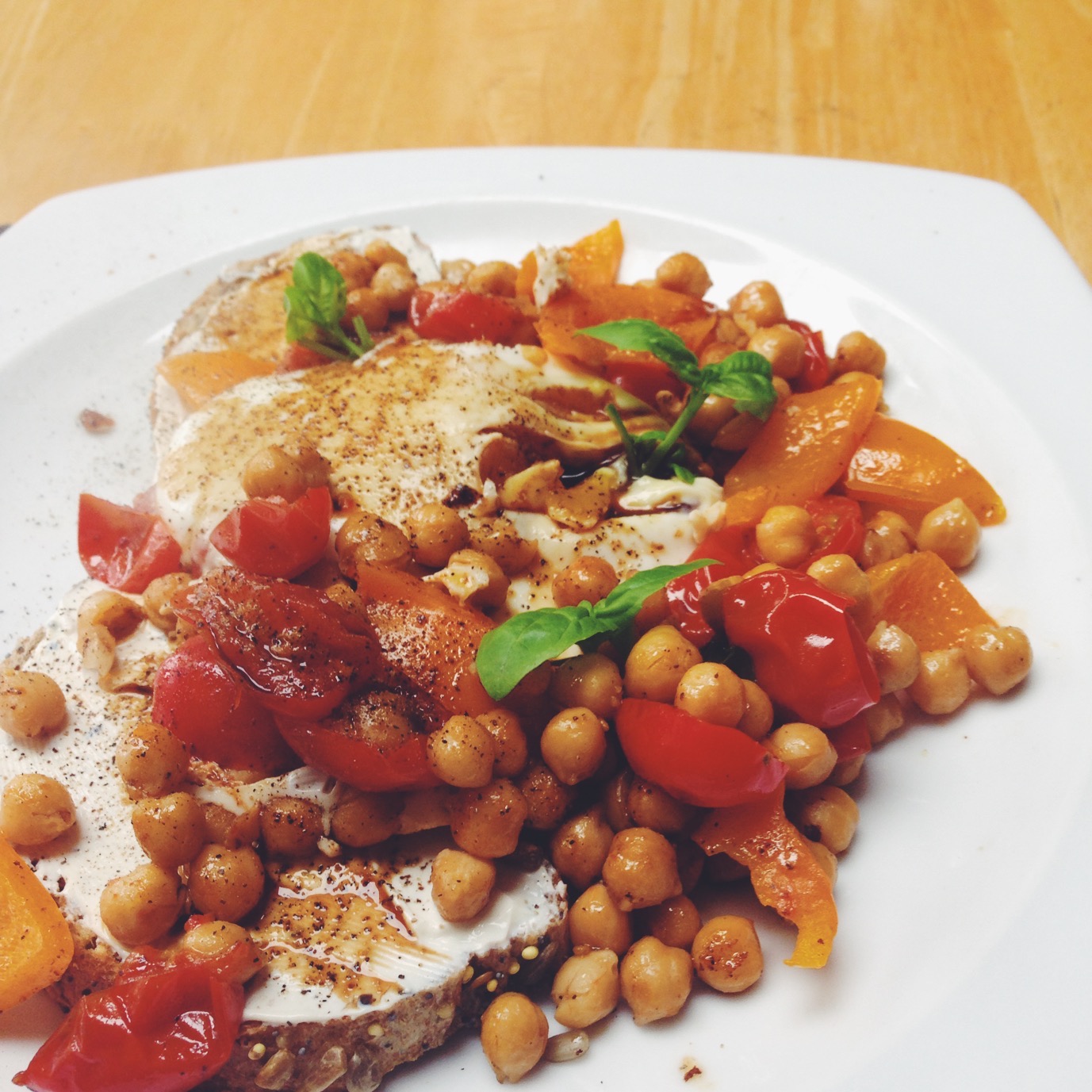The pepper I had left over from this week’s Bolognese so it’s totally optional. If you also have the luxury of a larger supermarket, you can substitute the chickpeas for cannellini beans and cream cheese for ricotta. Jamie also adds a pinch of fennel seeds…
